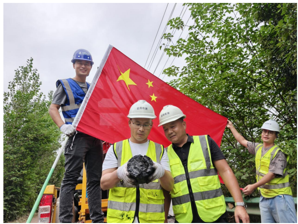 此刻該項目的彎沉車也在緊密的沿著蜿蜒的道路進行檢測,檢測人員的笑臉與國旗相互輝映,展現(xiàn)新時代檢測勞動者最美的風(fēng)采。
